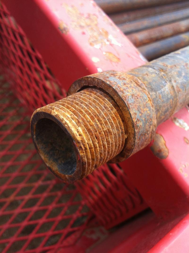 Fake Hydra Jett tim king Tool joint pipe. As you can see in pictures, just cheap china plumbing pipe threaded with flat electric conduit threads, with small larger pipe sleeve welded on to look like machined tool joint pipe.The reason for fake tool joint pipe is to make a rig to sell and apear to be better than it really is. Real tool joint drill pipe cost more than hydrajett boremaster sells rigs for. (pic below)