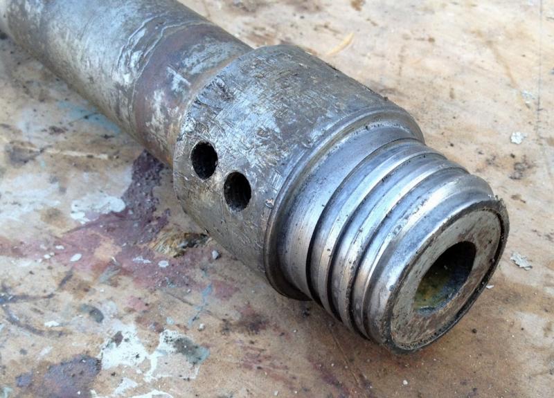 Below hydrajett boremaster swivel shaft shows the Poooor TINY WATER flow with tiny hole for water to flow through. Even if you have 3 inch mud pump, when you have hydrajett TOY swivel with 3/4" inch through hole, thats what your drilling with. Toy rigs get toy results.